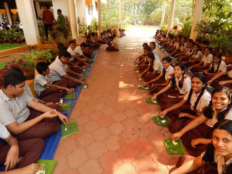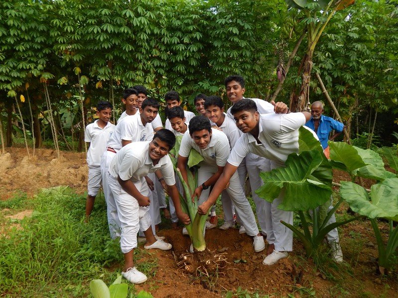 Every year the school sows and harvest paddy in the nearby field. The students witness the various stages of production such as winnowing, steaming etc.. until it becomes rice.