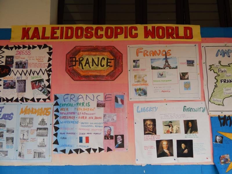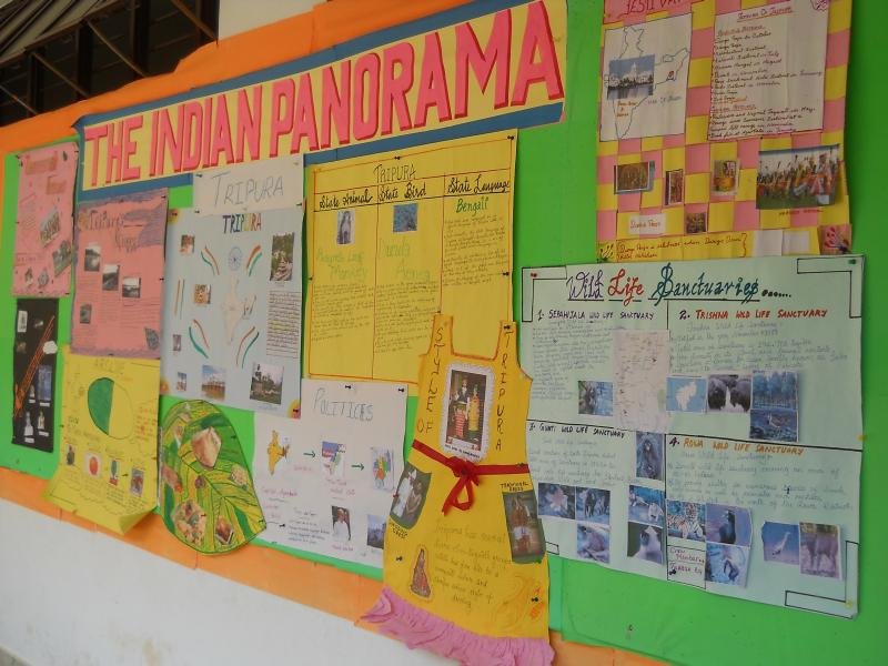 In the morning assembly there is a news reading segment where a student from class VII or VIII reads the days’ important news. The children listen to the news. Each child is asked to keep a news diary in which they write the important news of the day. The class teacher supervises this by giving necessary corrections and instructions. To assist the students, the day’s news will be typed and displayed on the display board with relevant pictures.