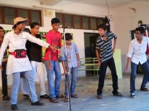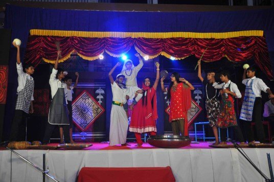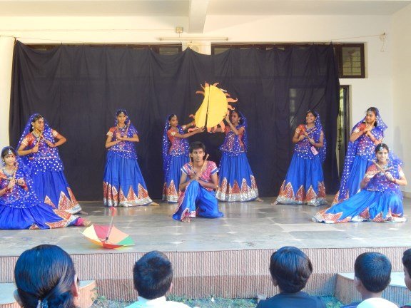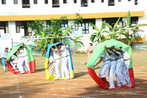 Competitions held under the Arts Festival are divided into seven segments that are conducted over a period of four to five months. This festival tests the various skills of the students—oratory, literary, musical, dancing, histrionic and intellectual skills. Competitions are held in around 120 items to ensure participation of all the students. Items are classified into individual, group and common to all. The whole school is divided into 4 houses and each house is further divided into four groups( Group 1 standard 1 &2 Group 2 standard 3 &4 Group 3 standard 5 to7 Group 4 standard 8 to 10) The Houses battle it out for the championship trophy. KG remains as a separate group. Competitions are conducted mainly for group action song, story telling, colouring etc..
